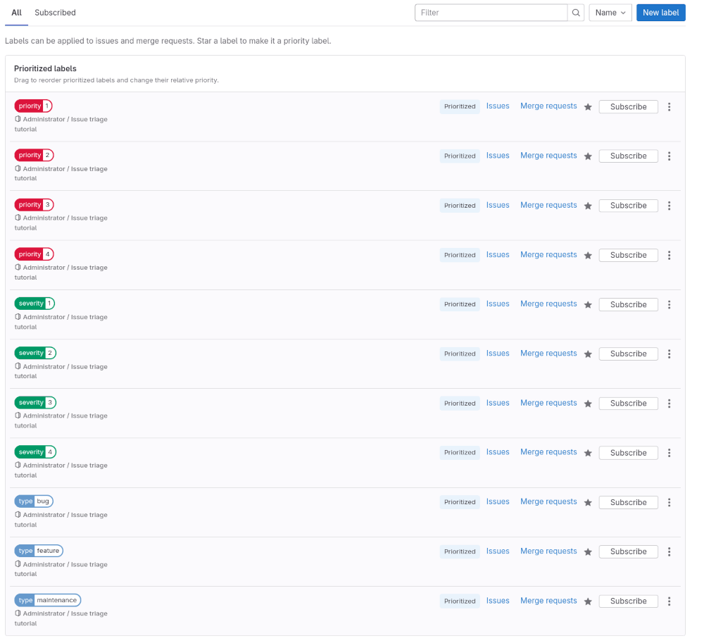 3. Prioritize all the labels you previously created. Make sure that labels of higher priority and severity are higher on the list than those of lower values.